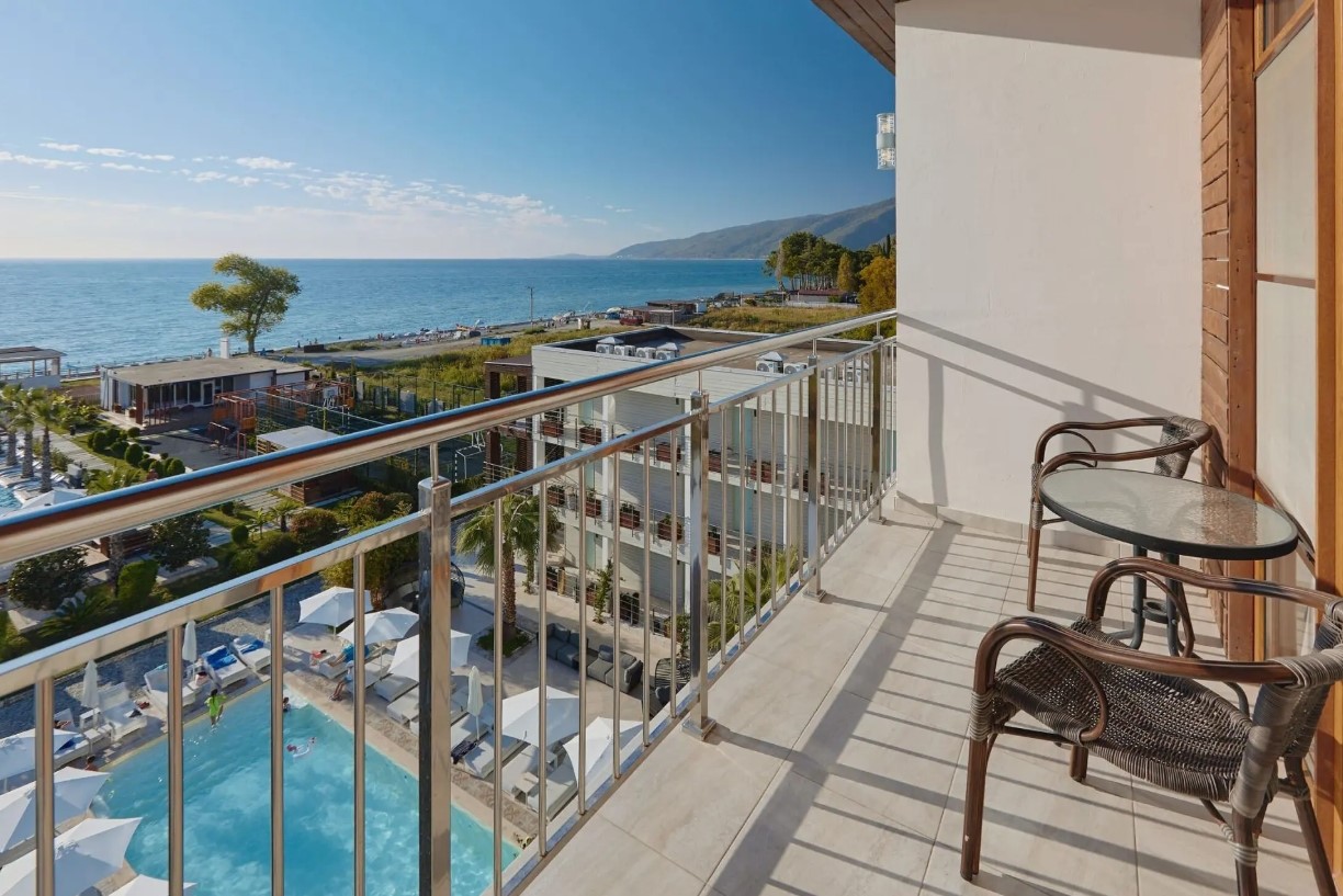 ВНИМАНИЕ !!! Честный отзыв !! Пребываю в данном отеле прямо сейчас . Мне есть с чем сравнить , так как был я много где .. и в Европе , и кучу раз в Турции , Бали , Тае , Кипре, Болгарии и тд Да , Вы скажите , что зачем сравнивать Абхазию ! НО !! Здесь дело в стоимости !!! И они позиционирует себя курортом с новыми отелями .. Вы условно доплатите еще 10% от стоимости поездки и получите шикарный шведский стол и безлимит алкоголя , круглосуточный стол закусок и тд ! Мы заплатили 350т , отель в турции Лара 5* 400-420 (возьмите на заметку и это будет небо и земля) Этот отель неплохой , да ! Но не за эти деньги ! Не за 20т в сутки ! ПРИМЕР : ужин с 18:00 , я прихожу к 19:00 макарон нет и не было до 19:40 Выбора нет … макароны , гречка , картошка Курица , свинина , рыба Из фруктов 2-3 вида фруктов Из десертов 2-3 десерта Алкоголь весь платный ! Кофе платный ! (Дают только на завтрак) Возьмите любую страну , добавьте 10-15% бюджета и Вы получите куда более богатый стол , безлимит алкоголя , более богатое представление об отдыхе . Вы по настоящему получите расслабление ) А здесь еще и травануться можно , не говоря о том что окружающей инфраструктуры нет , сидите в отеле . Почему я здесь ? Потому что родственники со своей «зоной комфорта» боятся улетать за границу … очень зря . Путешествуйте , любите , покоряйте мир ! Отель неплохой , вид красивый , хороший бассейн и новые пуфы лежаки и тд Но за эту стоимости сервис максимально страдает Как в еде так и в обслуге Добавили бы хотя бы алкоголь , а не ставили бары платные ! Те кто пишет про отличный сервис , ну видимо им не с чем сравнить , либо ге жалеют свои кровные деньги