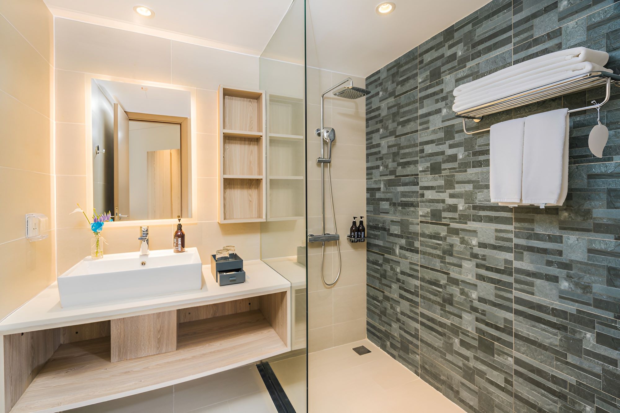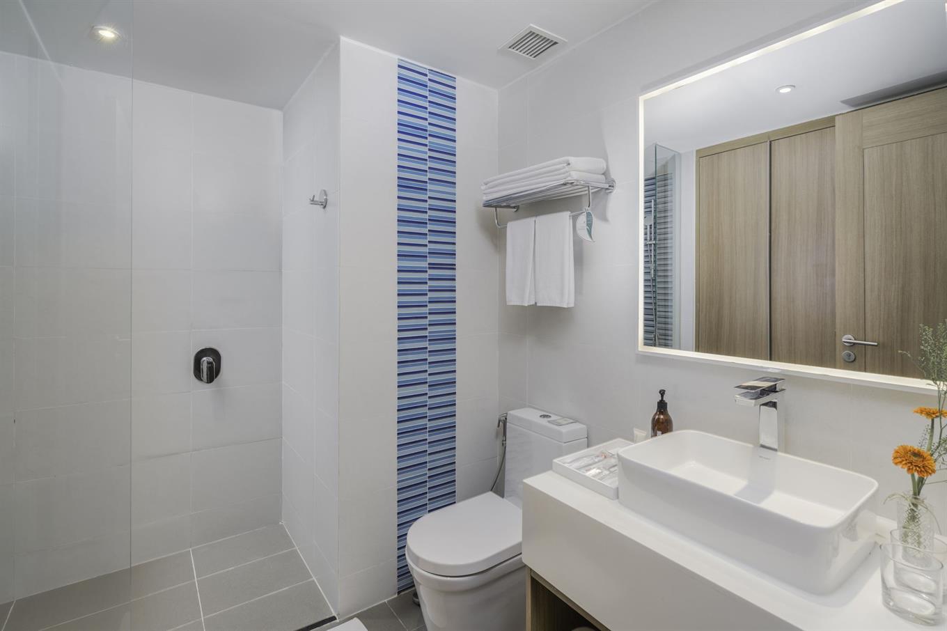Улучшенный номер на 2-4 этаже включает спальню с двуспальной кроватью king-size/2 односпальными кроватями, ванную комнату с душем, балкон. В комплектации телевизор, тапочки, телефон, фен, сейф, гигиенические средства, кондиционер, гладильные принадлежности (по запросу), Wi-Fi. Из номера открывается вид на океан.